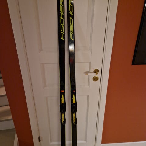 Fischer RC Sprint langrennsski med bindinger. Ski i svart og gul farge, egnet for klassisk stil. 170cm