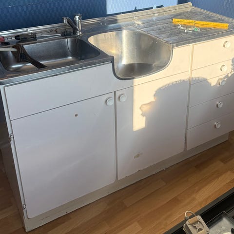 Originalt, heltre kjøkken fra 1964. Skap med fine og praktiske detaljer. Du må demontere det selv.