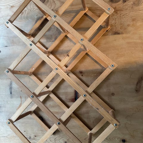 IKEA vinlagringshylle i tre, designet for oppbevaring av vinflasker. Hylle med flere nivåer for organisering og lagring av flasker i horisontal posisjon.
