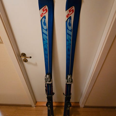 Kjempegode Atomic C-Series alpinski med lengde 168 cm i gråblå farge. Skiene er utstyrt med marker-bindinger. Ikke synlig brukt, kun 3-4 turer. Lagret inne.