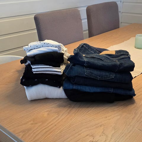 Black and beige pregnancy pants from quality comfy soft fabric grow with your belly. Size approx M-XL. My absolute favourite in 3rd trimester. 100,- each. Additional wide pants 3pcs for free.