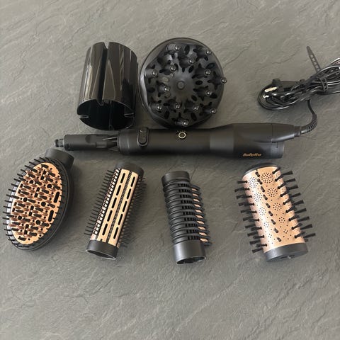 BaByliss roterende varmluft rundbørste med varmefunksjon og utskiftbare børstevedlegg. Skaper fint volum.