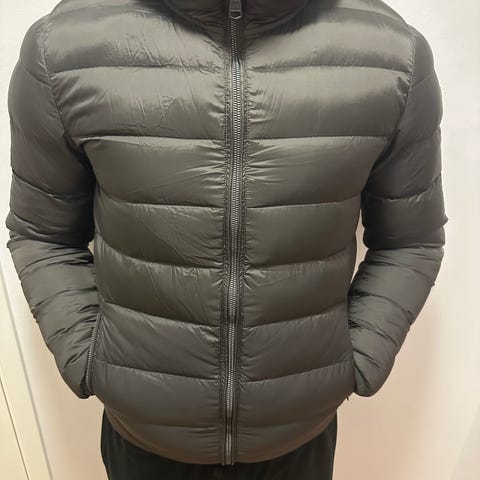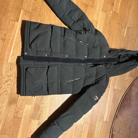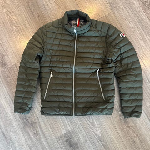 Jean Paul jakke i dun, størrelse S, i grønn farge. Jakken er designet for menn og egner seg til utendørs bruk. Materialet består av dun som gir isolasjon og varme.