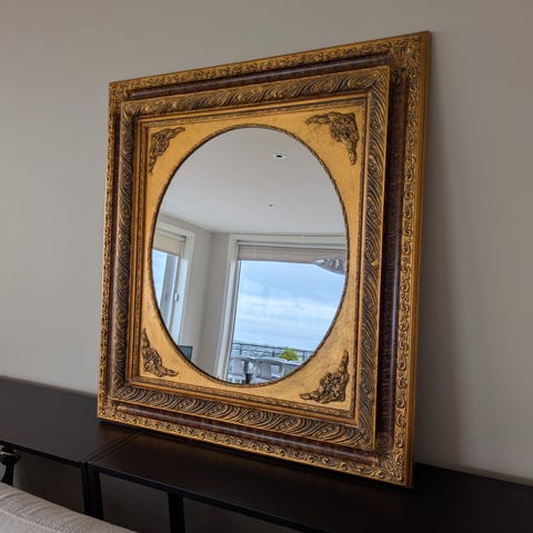 Nydelig vintage speil med flotte detaljer i gull!