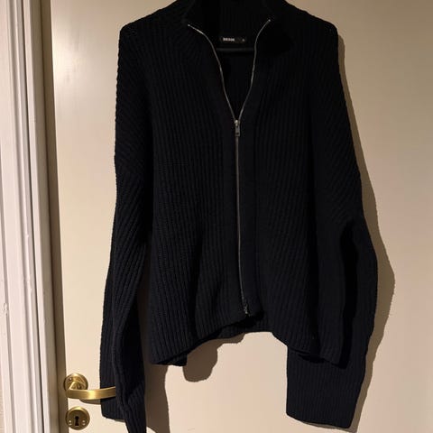Klær dame sort zip knit cardigan med 2-veis glidelås fra Lager157.