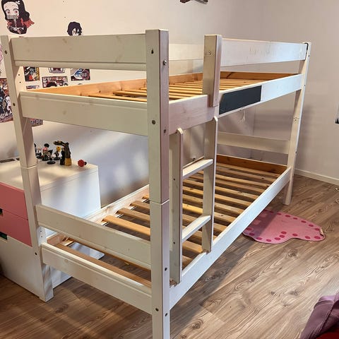 Selger etasjeseng med bunnar, madrasser kan følge med dersom ein ønsker det. Senga er i lakkert furu. Den er eindel år gamal, men lite brukt dei siste åra. God kvalitet. Kan også brukast som to enkeltsenger. Kan levere i bergensområdet for 200kr ekstra.