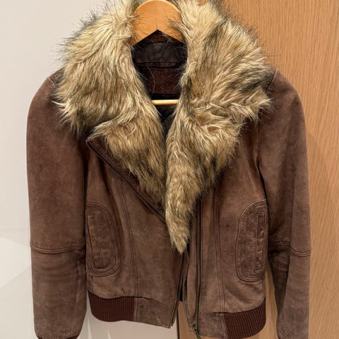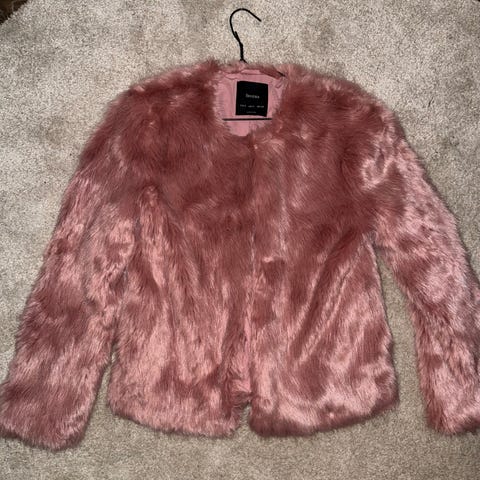 Rosa fuskepelsjakke fra Bershka i størrelse S. Fin og behagelig. Pent veldig lite brukt og vil si som ny i fin stand. Perfekt til høst og vinter