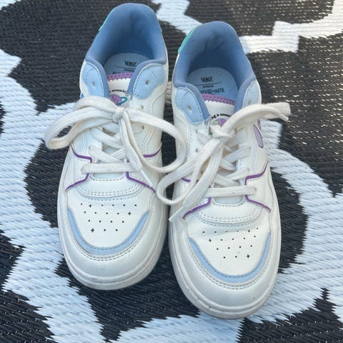 Puma Trinomic barne joggesko i størrelse 39 MEN paser fint til 38/39 for unisex. Joggeskoene har en kombinasjon av materialer i svart og grått, med gummisåle og snøring. Egnet for daglig bruk og aktivitet.Sønnen min brukte dem om vinteren som innesko på skolet til aktiviteter. De viser normale bruksmerker, som vist på bildene.