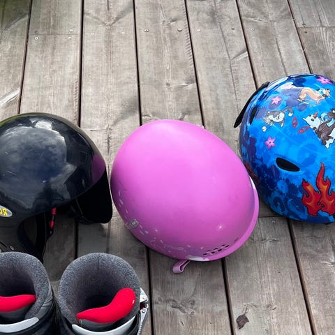 Lilla med briller, str 52-56. Noen bruksmerker, blant annet merke etter kamera på toppen. Pris: 100 kr