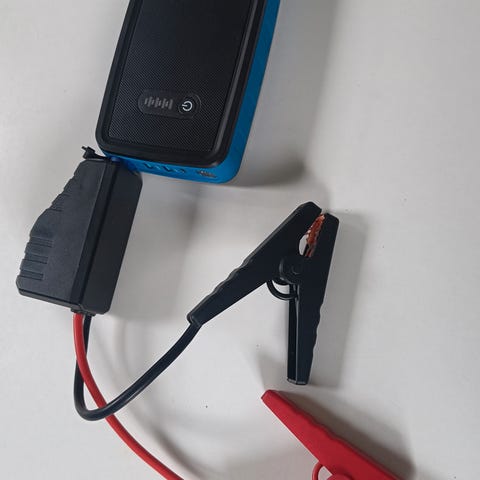 Hjelpestarten gir en sterk startstrøm til kjøretøy med 12 V elektriske systemer. Hjelpestarterens batteri lades via USB-C-inngangen med tilhørende kabel. Det er en batterikontakt for start av kjøretøy. Du justerer utgangsspenningen med funksjonsknappen på fronten. Starthjelpen har en levetid på 1000 ladninger.