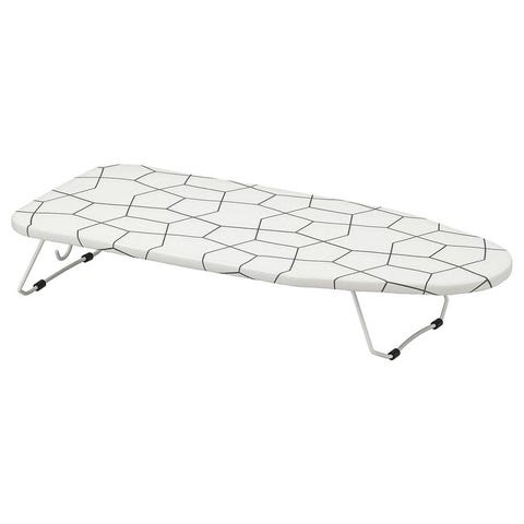 IKEA strykebrett med mønstret trekk. Brettet har en metallramme og støtte for strykejern. Passer til bruk i hjemmet for stryking av klær.