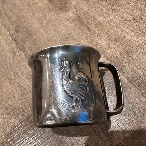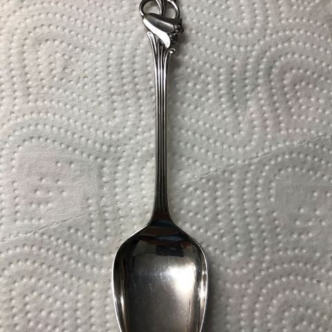 Gammel sildegaffel/fiskegaffel i sølvplett.