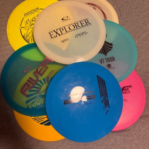 3 discraft, 6 discmania, 5 latitude, 4 prodigy, 3 westside, 2 dynamic Discovery og 1 fra kastaplast.