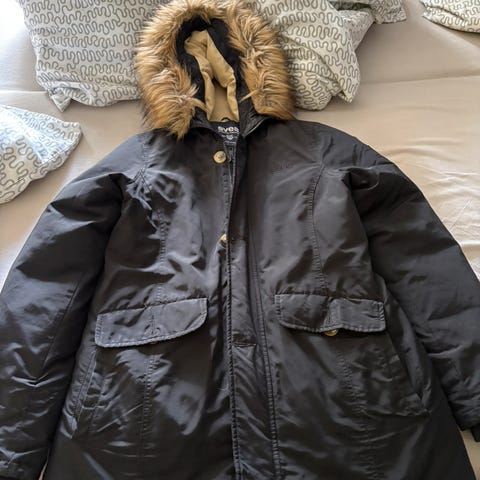Pent brukt. Aldri vasket i maskin. Varm, god og fin jakke.