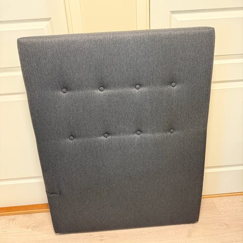 Bohus sengegavl i grått stoff med knappdetaljer. Passer til å feste bak sengen for ekstra støtte og estetisk utseende.