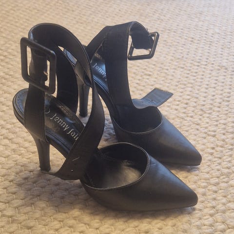 Christian Louboutin Hæler i størrelse 36.5. Skoene er laget av svart skinn og har en høy hæl.