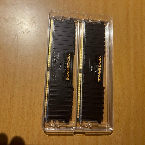Corsair Vengeance pro DDR4 RAM kit bestående av to moduler på 16GB hver, totalt 32GB. RAM- perfekt for gaming