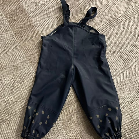 Pent brukt to delt regntøy, str.90. Farge: blå. Brukt til et barn. Litt slitasje på fotstrikkene, ellers som nytt.