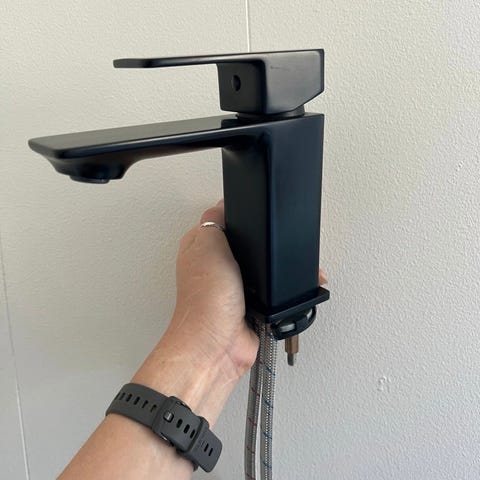 Hansgrohe Talis E 110 sort matt servantbatteri i krom. Batteriet har et moderne design og passer til servant. Produktet leveres med monteringsdetaljer og tekniske spesifikasjoner for enkel installasjon.