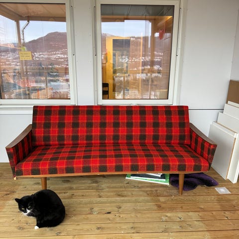 Eldre sovesofa gies bort.