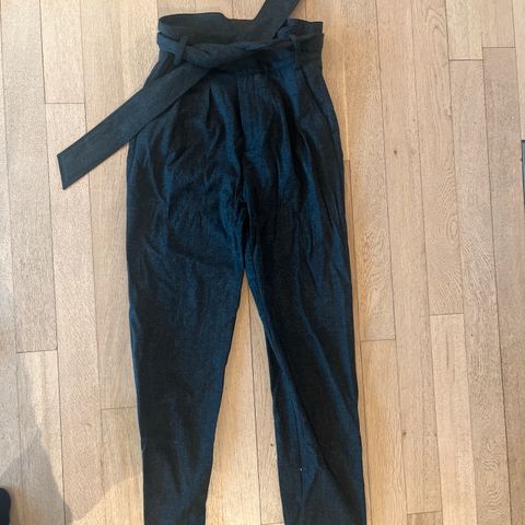 Ankellange bukser Oppbrettbare kanter Skrålommer og fuskelommer med knapp bak Markerte folder foran og bak Glidelås- og knappelukking Innvendig benlengde: 66 cm