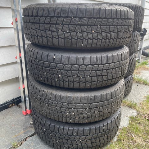 4 Piggfrie vinterdekk med 6mm mønster igjen selges rimelig. Produsert uke 23, 2020.
