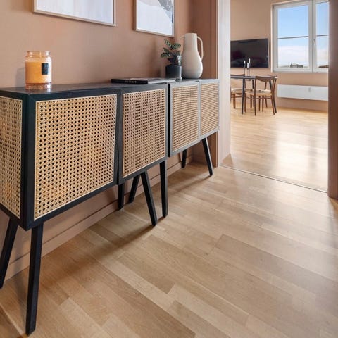 Skjenk fra bohus. Kjøpt for ca 3 år siden for 4499kr. Pent brukt, men noen bruksmerker i topplaten og ett hull i bakplaten som vi har brukt for å få ledninger inn i skapet.