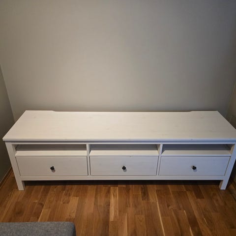 Eldre TV- benk i tre. Vet ikke hvilket merke, men den er solid og av god kvalitet. Meget pent brukt, så den har ingen merker.