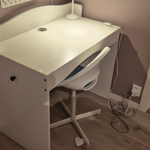 Praktisk hvitt bord med hylle