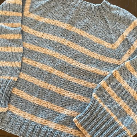 Myk, lett og varm genser. Strikket i Drops Air. Ragland og vaffelstrikk som vrangbord på ermer, hals og nede.