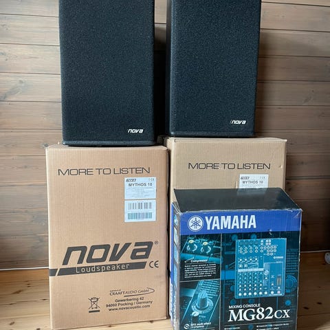 Yamaha PA anlegg + 3 STK yorkwille monitorer. 16 kannal yamaha powermixer. 2 STK yamaha kasser 2 15 tom høytalere +horn. 3 STK Yorkwille 15 tom høytalere. Anlegget virker alt OK.