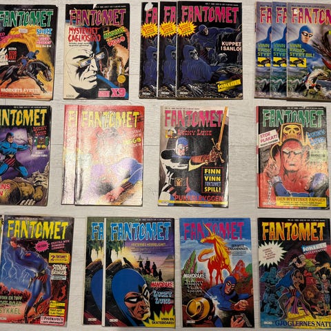 Fantomet Fantomet-serie tegneserier. Serien består av flere utgaver med forskjellige historier og omslagsillustrasjoner. Passer for samlere og lesere av klassiske tegneserier.
