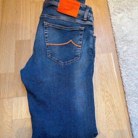 Jacob Cohën jeans, modell Style 622. Mørkeblå i eksklusiv denim med perfekt passform. Buksen er helt strøken, nesten ikke brukt! Og har en kjempefin patch.