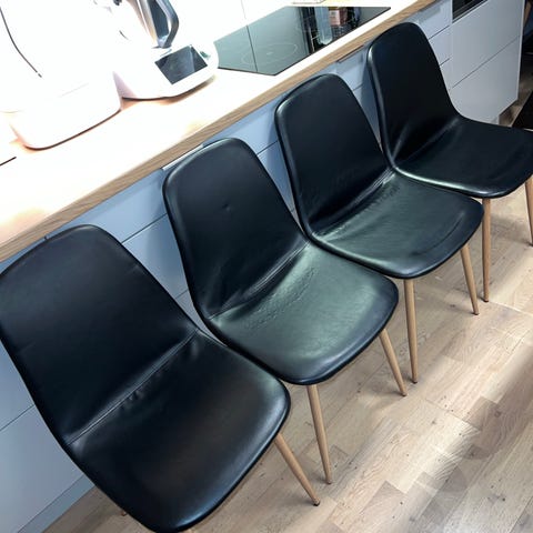 Spisestol 6stk konjakk imitert skinn/natur eik