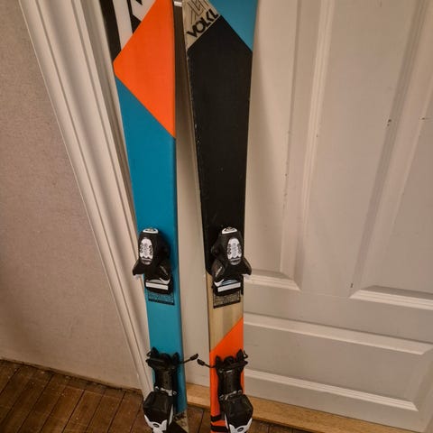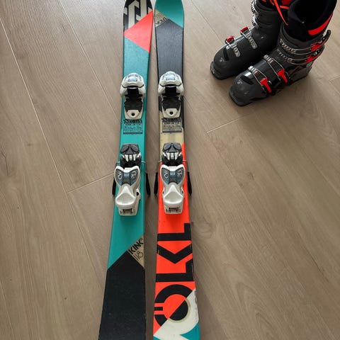 Volkl chica 100 cm slalåmski med marker bindinger. Skiene har en lengde på 100 cm. Skistøvlene er fra Head, størrelse 210-215 (tilsvarer str 33). Noen riper/skrap i sålen, men kantene er hele og pene.