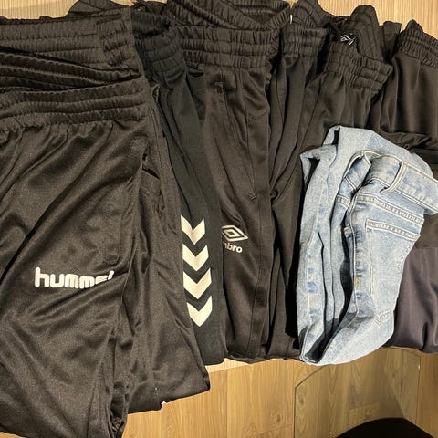 Hummel treningsbukse for barn i størrelse EU S, tilsvarende 164. Buksen er sort og laget i 100% polyester. Den har elastisk midje med snor for justering. Glidelås i begge lommer er intakt.