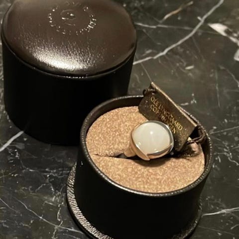 Selger denne fine - Lotus ringen nr 3 med hvit månestein, sølv, rødt gull og roségull, med diamanter i størrelse 52. Kjøpt i 2015, men har ikke blitt brukt på 10 år da den er for liten derfor er den som ny. Nypris 35.900kr