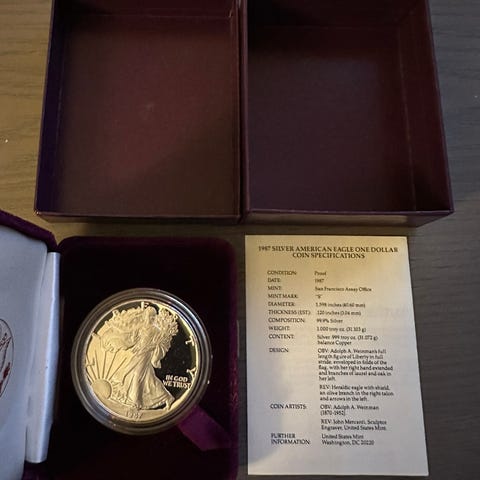 1 oz 1989 Proof American Silver Eagle sølvmynt til salgs.