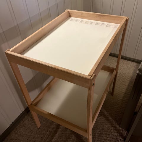 Selger SNIGLAR stellebord fra IKEA. Kun brukt to ganger og fremstår som nytt. Vi har i tillegg forsterket det litt for ekstra stabilitet. Praktisk stellebord med god plass til oppbevaring. Selges fordi vi ikke har behov for det.