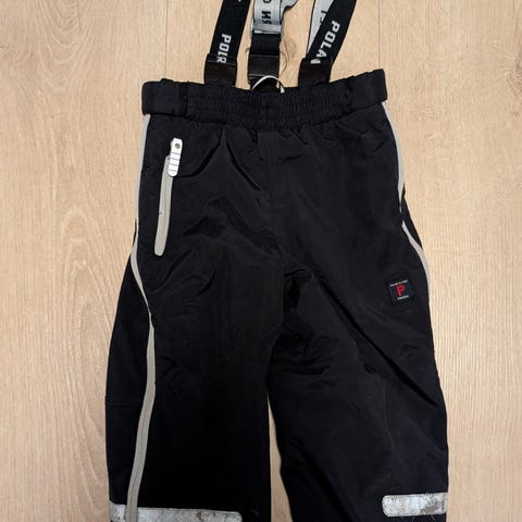 Polarn O. Pyret barnebukse i størrelse 98, farge svart, passer for både jenter og gutter.. Bukse har justerbare stropper under bena for bedre passform og refleksdetaljer for økt synlighet.
