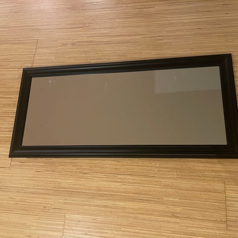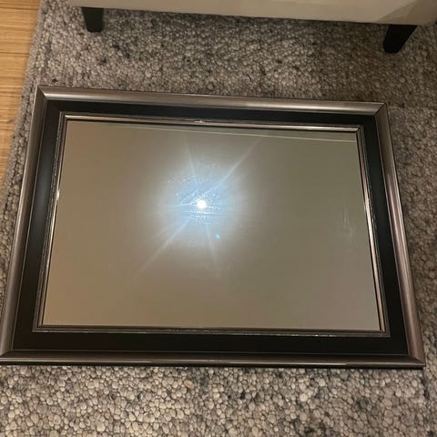 Merker på baksiden, som for øvrig er i papir og papp. Selve speilet er helt i orden.