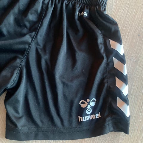 Hummel sport shorts i størrelse EU XS, tilsvarende 140 for barn. Shortsen er svart og laget i et materiale som egner seg for ulike sport- og fritidsaktiviteter.