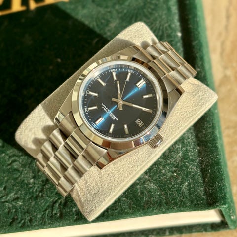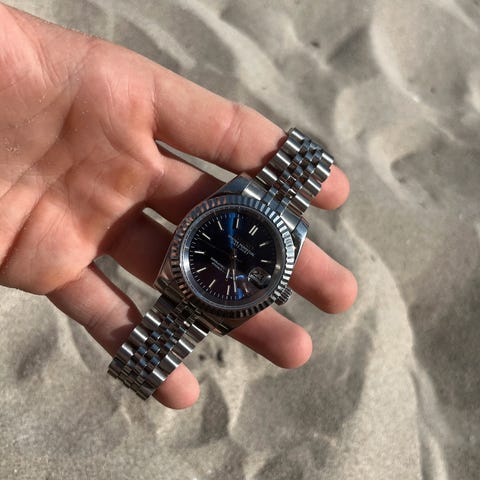 Seiko mod – automatisk klokke med rød sunburst-skive (Datejust-stil)