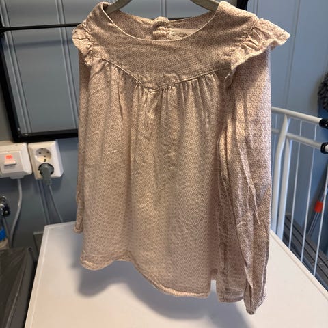 Newbie Bluse i flerfarget mønster, størrelse 110, laget av bomull. Passer for jenter, alder 4-5 år. Blusen har knappelukking foran og lange ermer. Nydelig!