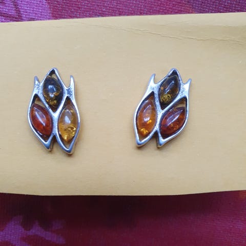 Flotte ørepynt i 925 sterling sølv og fasettslipte blå stener formet som hjerter. Stemplet sterling og 925 på stopperne. De er ca 13x12 mm store, hele og fine !