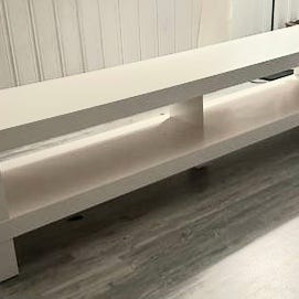 Skjenk i tre som er malt hvit og toppen er beiset. En del bruks merker men kan lett males over. Må hentes.