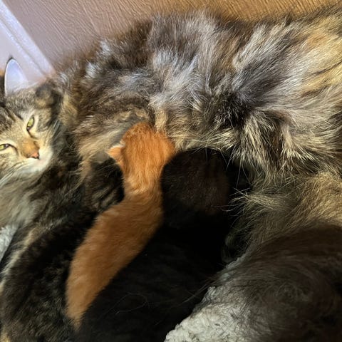 Det er 3 jenter og 3 gutter. Alle er helt unike – både i farger, mønster og personlighet. Faren er ukjent, og det er også mulig at det har vært flere fedre i samme kull.