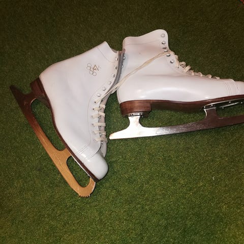 Kunstløpsskøyter i størrelse 37, syntetisk skinn. Noen bruksmerker (se bilder)