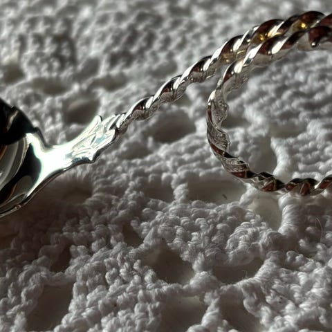 sølvskje med dekorativt mønster. Kan sende med PostNord kr 69