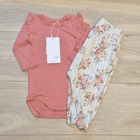 To buksedresser i 68 en fra buddy and hope og en fra wheat. Kjole i småblomstrete mønster i 68 fra wheat. Dette er en nydelig liten klespakke som egner seg til vår og sommer. Kjolen fra name it fungerer hele året og har herlig stoff